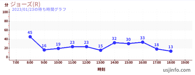 • ジョーズ(R)$B$N(B2023年01月23日の待ち時間