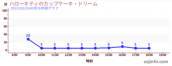• ハローキティのカップケーキ・ドリーム$B$N(B2023年02月03日の待ち時間