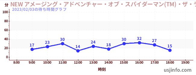 • NEW アメージング・アドベンチャー・オブ・スパイダーマン(TM)・ザ・ライド 4K3D$B$N(B2023年02月03日の待ち時間
