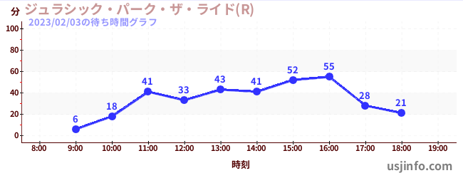 • ジュラシック・パーク・ザ・ライド(R)$B$N(B2023年02月03日の待ち時間