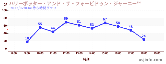 • ハリーポッター・アンド・ザ・フォービドゥン・ジャーニー™$B$N(B2023年02月03日の待ち時間
