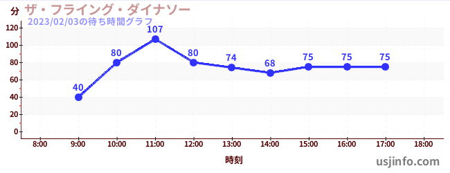 • ザ・フライング・ダイナソー$B$N(B2023年02月03日の待ち時間