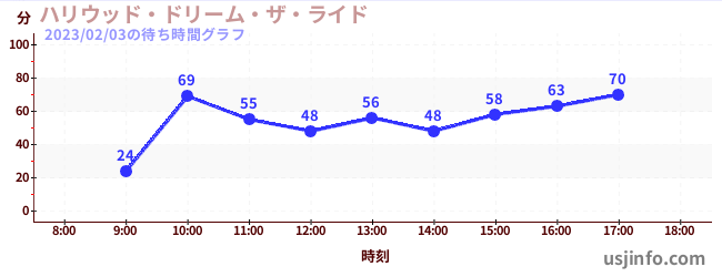 • ハリウッド・ドリーム・ザ・ライド$B$N(B2023年02月03日の待ち時間