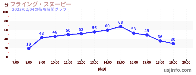 • フライング・スヌーピー$B$N(B2023年02月04日の待ち時間