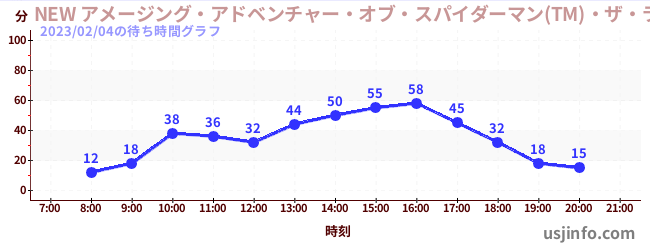 • NEW アメージング・アドベンチャー・オブ・スパイダーマン(TM)・ザ・ライド 4K3D$B$N(B2023年02月04日の待ち時間