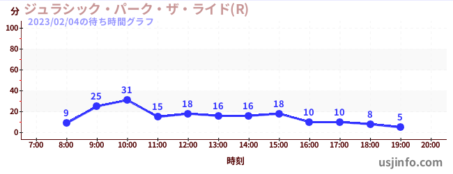 • ジュラシック・パーク・ザ・ライド(R)$B$N(B2023年02月04日の待ち時間