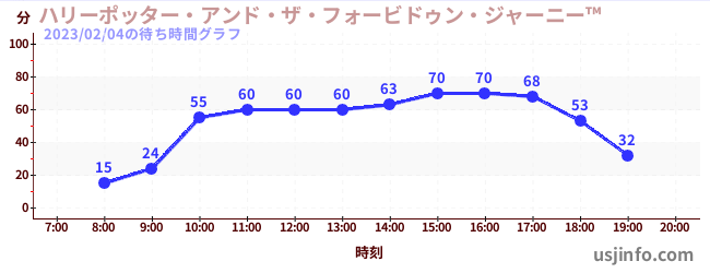 • ハリーポッター・アンド・ザ・フォービドゥン・ジャーニー™$B$N(B2023年02月04日の待ち時間