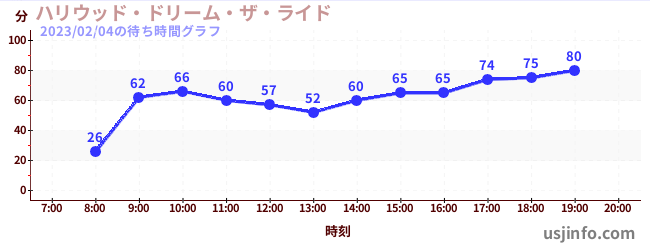 • ハリウッド・ドリーム・ザ・ライド$B$N(B2023年02月04日の待ち時間
