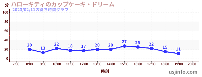 • ハローキティのカップケーキ・ドリーム$B$N(B2023年02月11日の待ち時間