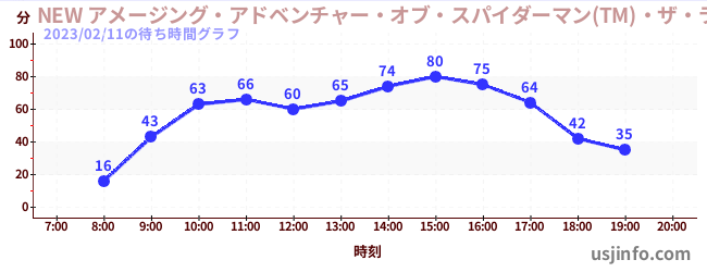 • NEW アメージング・アドベンチャー・オブ・スパイダーマン(TM)・ザ・ライド 4K3D$B$N(B2023年02月11日の待ち時間