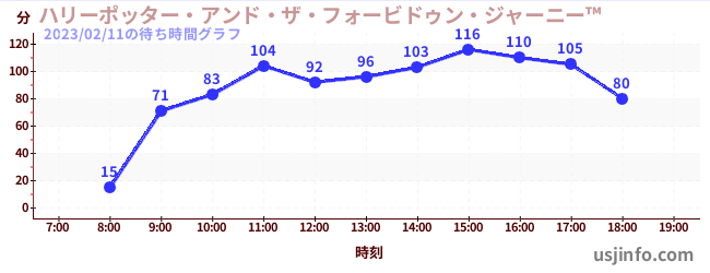 • ハリーポッター・アンド・ザ・フォービドゥン・ジャーニー™$B$N(B2023年02月11日の待ち時間
