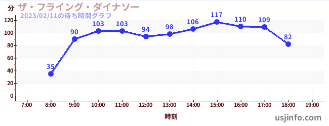 • ザ・フライング・ダイナソー$B$N(B2023年02月11日の待ち時間