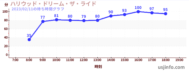 • ハリウッド・ドリーム・ザ・ライド$B$N(B2023年02月11日の待ち時間