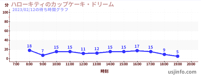 • ハローキティのカップケーキ・ドリーム$B$N(B2023年02月12日の待ち時間
