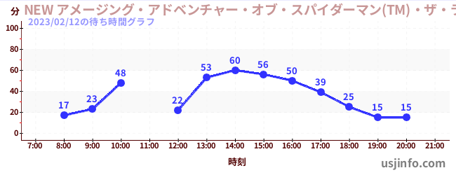 • NEW アメージング・アドベンチャー・オブ・スパイダーマン(TM)・ザ・ライド 4K3D$B$N(B2023年02月12日の待ち時間