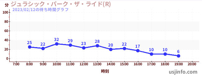 • ジュラシック・パーク・ザ・ライド(R)$B$N(B2023年02月12日の待ち時間