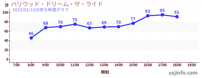 • ハリウッド・ドリーム・ザ・ライド$B$N(B2023年02月12日の待ち時間