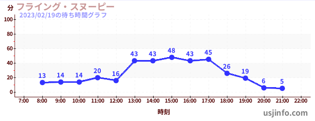 • フライング・スヌーピー$B$N(B2023年02月19日の待ち時間