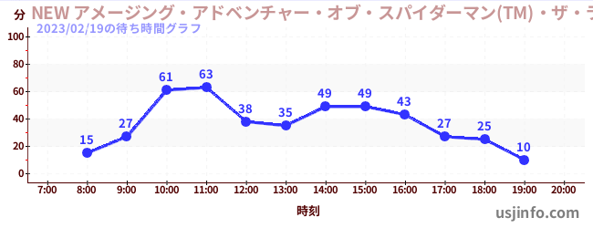 • NEW アメージング・アドベンチャー・オブ・スパイダーマン(TM)・ザ・ライド 4K3D$B$N(B2023年02月19日の待ち時間