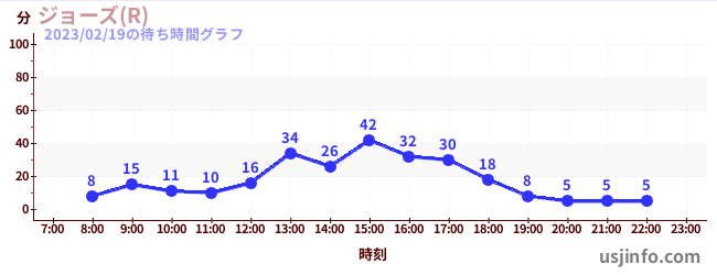 • ジョーズ(R)$B$N(B2023年02月19日の待ち時間