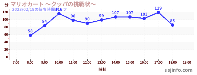 • マリオカート ~クッパの挑戦状~$B$N(B2023年02月19日の待ち時間