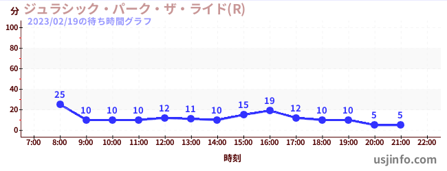 • ジュラシック・パーク・ザ・ライド(R)$B$N(B2023年02月19日の待ち時間