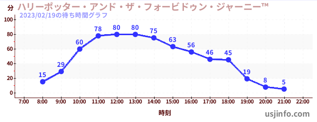 • ハリーポッター・アンド・ザ・フォービドゥン・ジャーニー™$B$N(B2023年02月19日の待ち時間