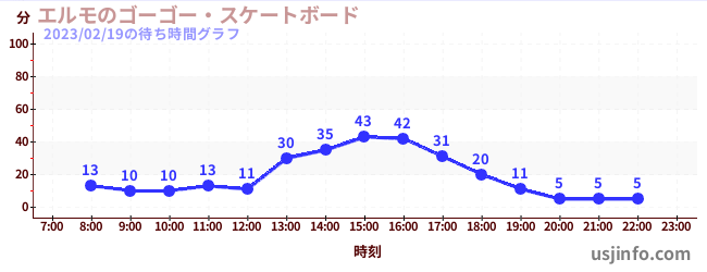 • エルモのゴーゴー・スケートボード$B$N(B2023年02月19日の待ち時間