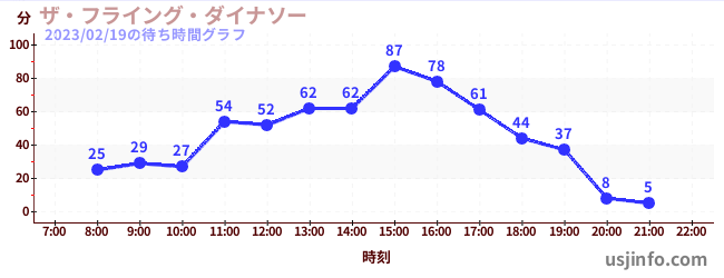 • ザ・フライング・ダイナソー$B$N(B2023年02月19日の待ち時間