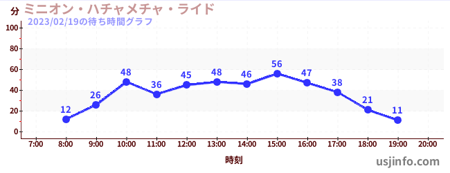 • ミニオン・ハチャメチャ・ライド$B$N(B2023年02月19日の待ち時間