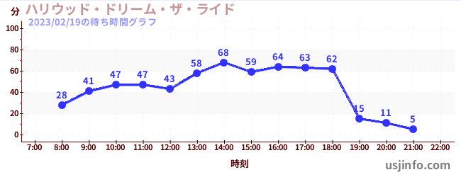 • ハリウッド・ドリーム・ザ・ライド$B$N(B2023年02月19日の待ち時間