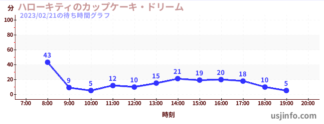 • ハローキティのカップケーキ・ドリーム$B$N(B2023年02月21日の待ち時間