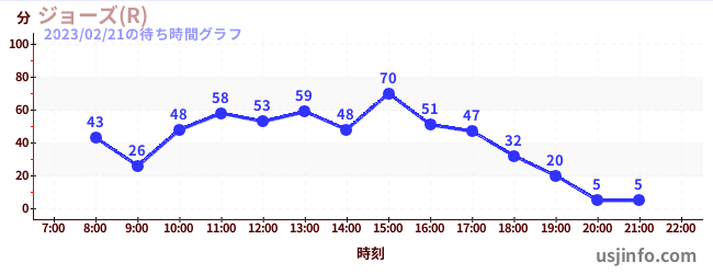 • ジョーズ(R)$B$N(B2023年02月21日の待ち時間