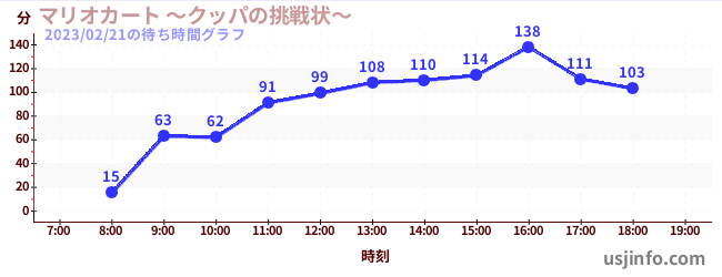 • マリオカート ~クッパの挑戦状~$B$N(B2023年02月21日の待ち時間