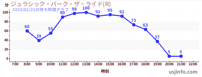 • ジュラシック・パーク・ザ・ライド(R)$B$N(B2023年02月21日の待ち時間