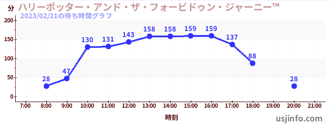 • ハリーポッター・アンド・ザ・フォービドゥン・ジャーニー™$B$N(B2023年02月21日の待ち時間