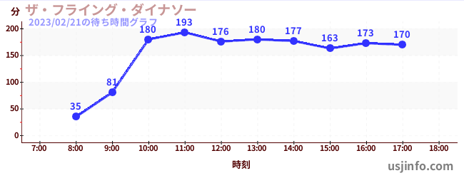• ザ・フライング・ダイナソー$B$N(B2023年02月21日の待ち時間