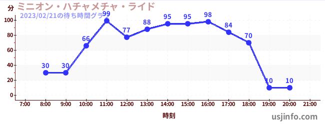 • ミニオン・ハチャメチャ・ライド$B$N(B2023年02月21日の待ち時間
