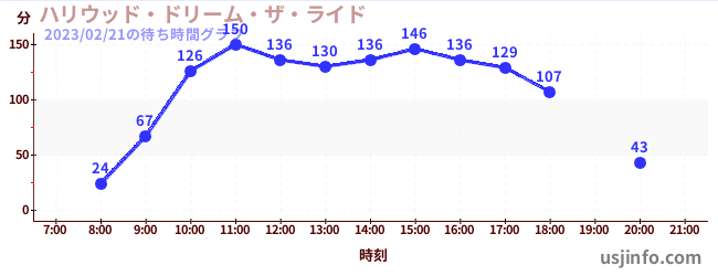 • ハリウッド・ドリーム・ザ・ライド$B$N(B2023年02月21日の待ち時間