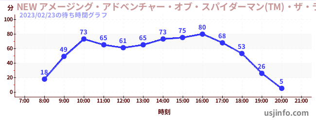 • NEW アメージング・アドベンチャー・オブ・スパイダーマン(TM)・ザ・ライド 4K3D$B$N(B2023年02月23日の待ち時間