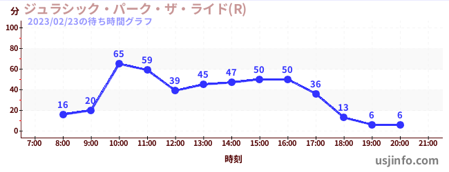 • ジュラシック・パーク・ザ・ライド(R)$B$N(B2023年02月23日の待ち時間
