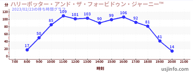 • ハリーポッター・アンド・ザ・フォービドゥン・ジャーニー™$B$N(B2023年02月23日の待ち時間