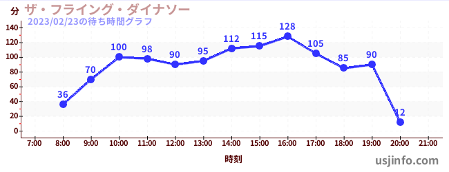 • ザ・フライング・ダイナソー$B$N(B2023年02月23日の待ち時間