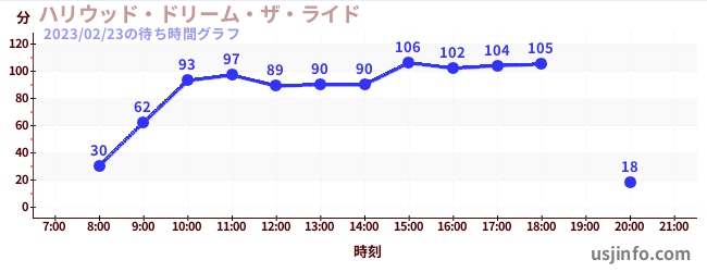 • ハリウッド・ドリーム・ザ・ライド$B$N(B2023年02月23日の待ち時間