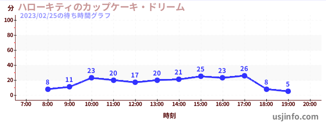 • ハローキティのカップケーキ・ドリーム$B$N(B2023年02月25日の待ち時間