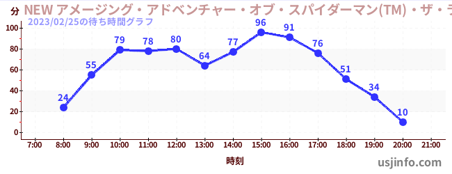 • NEW アメージング・アドベンチャー・オブ・スパイダーマン(TM)・ザ・ライド 4K3D$B$N(B2023年02月25日の待ち時間