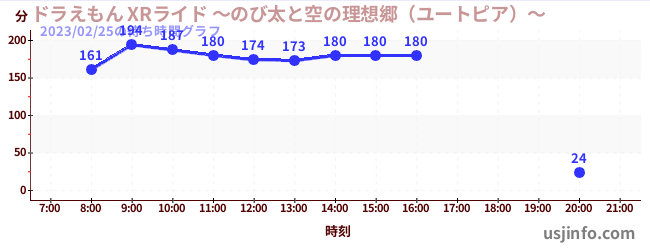 • ドラえもん XRライド ~のび太と空の理想郷(ユートピア)~$B$N(B2023年02月25日の待ち時間