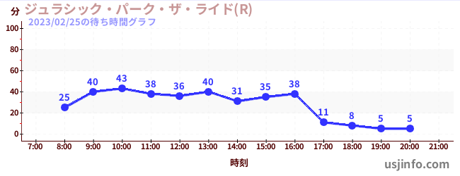 • ジュラシック・パーク・ザ・ライド(R)$B$N(B2023年02月25日の待ち時間