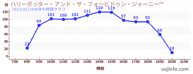 • ハリーポッター・アンド・ザ・フォービドゥン・ジャーニー™$B$N(B2023年02月25日の待ち時間