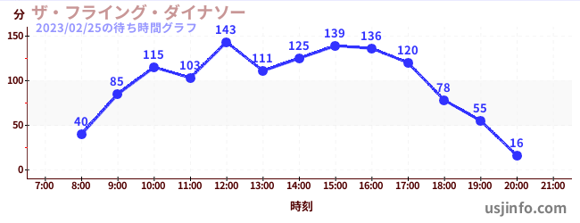 • ザ・フライング・ダイナソー$B$N(B2023年02月25日の待ち時間